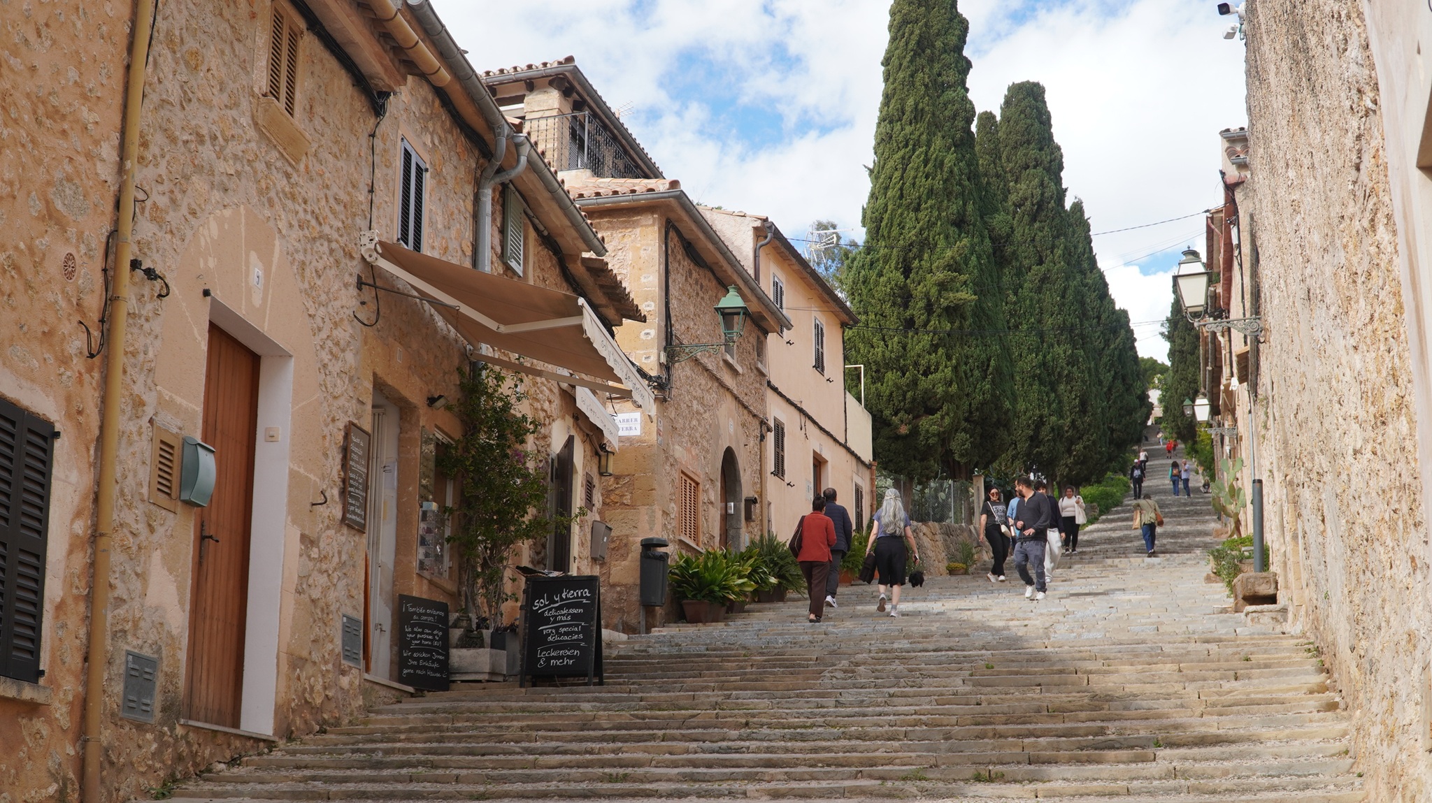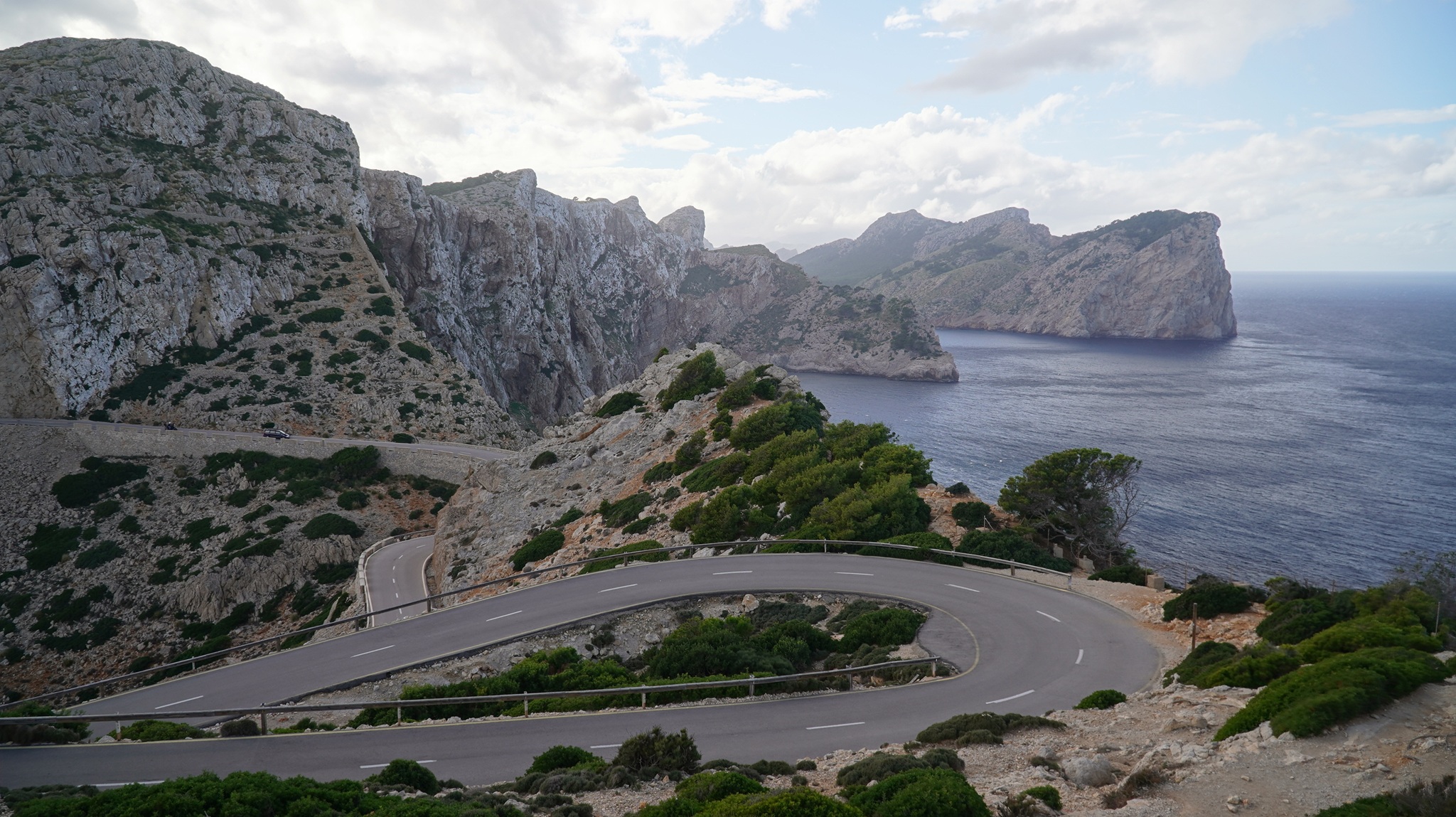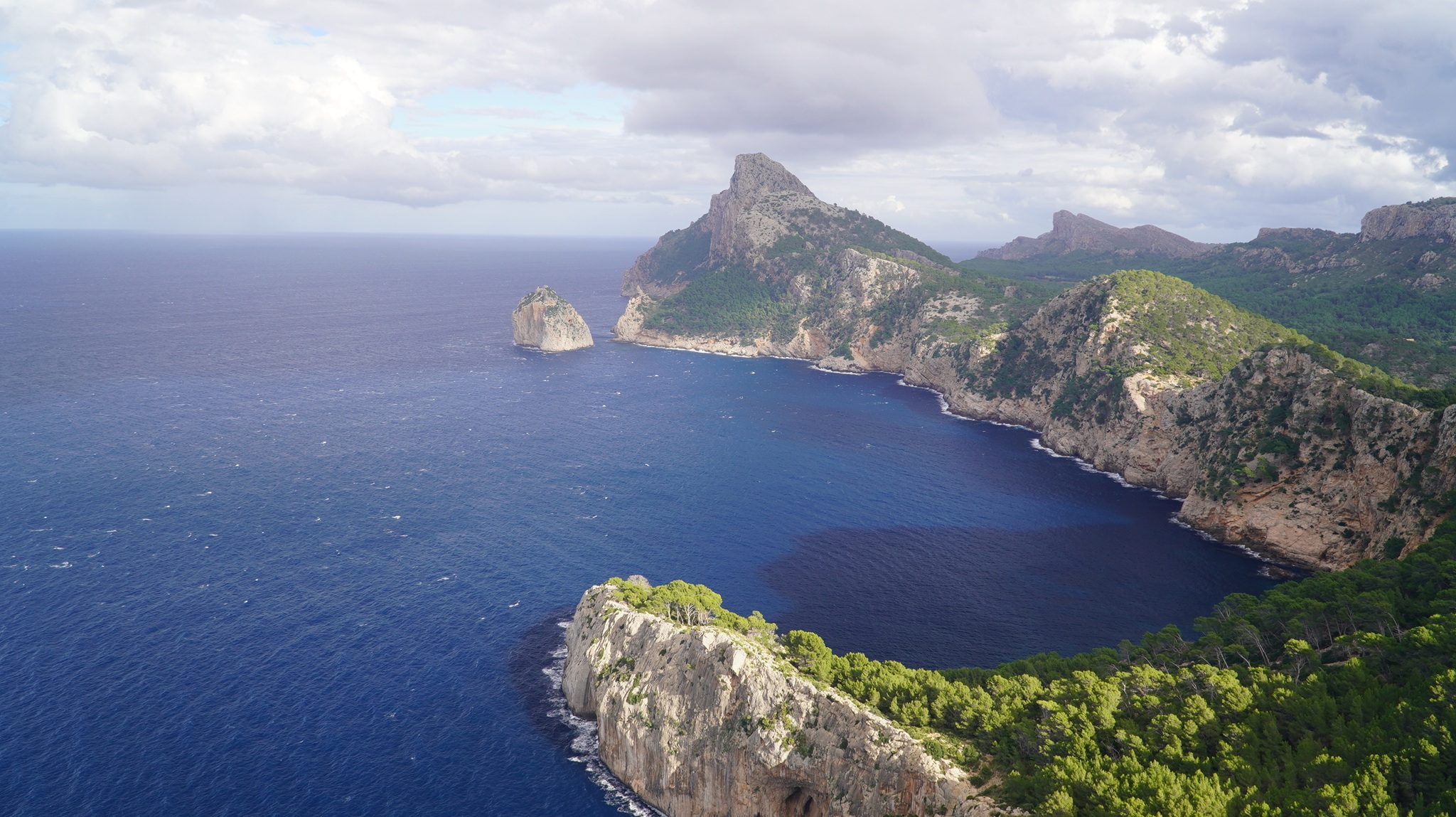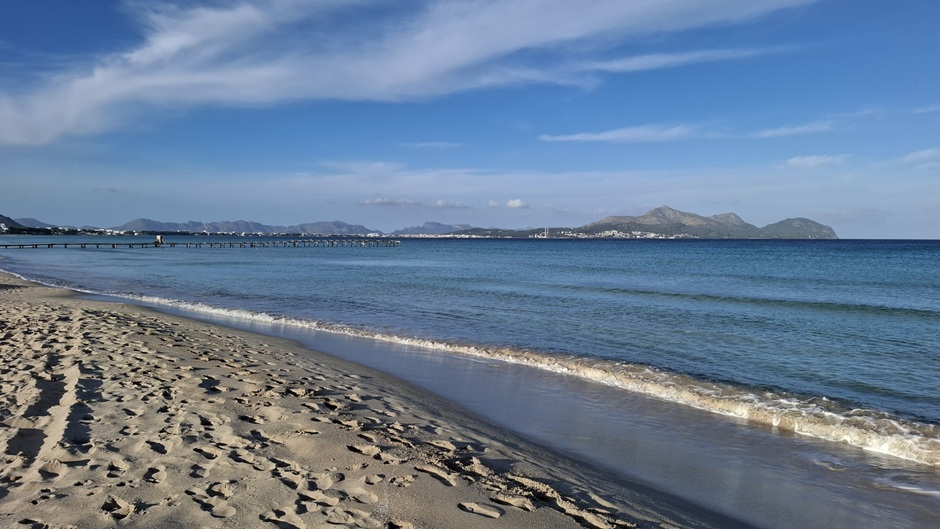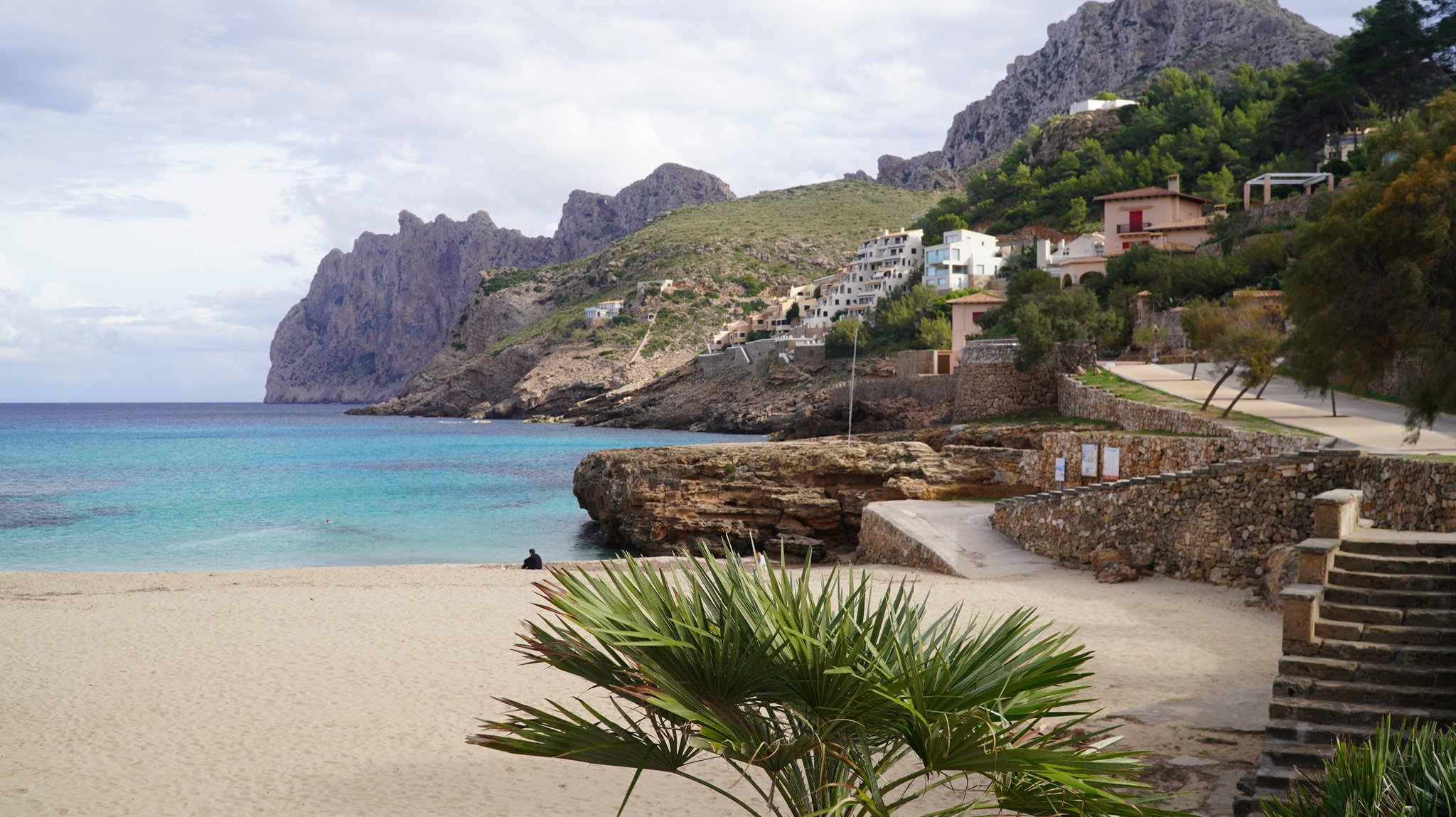 Heute Morgen ist es stark bewölkt doch mit fast 20°C sehr mild. So fahren wir via Santa Margalida an die Nordküste bei Alcudia. Hier bummeln wir durch die fast menschenleeren Altstadtgassen und besuchen den heutigen Wochenmarkt. Vor allem das frische Obst und Gemüse sowie lokale Käsespezialitäten, sowie Schinken und Olivenöl prägen das Angebot. Dann fahren wir nach Pollença, um auch hier den Wochenmarkt zu besuchen. Hier ist ungleich mehr los und so geht es über die Plaça Major bis zur Treppe zum Calvari. Da heute Sonntag ist, sind auch viele Locals hier unterwegs. Unsere Fahrt führt uns weiter zur nahen Cala Sant Vicenç, wo wir an der Cala Molins einen kurzen Fotostopp einlegen. Dann fahren wir weiter in Richtung Port de Pollença und von dort weiter in Richtung Cap Formentar. Die meiste Zeit des Jahres kann man hier nicht mit dem Mietwagen unterwegs sein (...nur per Shuttlebus), doch in der Nebensaison geht das und so fahren wir zum Mirador de Es Colomer. Hier gibt es einen kurzen Weg zu den Aussichtspunkten, von denen man einen tollen Blick auf die wilde Küste im Norden hat. Dann geht unsere Fahrt weiter auf der Straße bis zum Far de Formentor. Die Straße hier ist ziemlich eng und sehr kurvenreich, was viele der Mietwagenfahrer scheinbar überfordert und diese dann entweder inmitten der Straße fahren oder wenn es eng wird einfach auf der Straße stehenbleiben. Damit ist schon nachvollziehbar, warum in der Saison die Straße für den Individualverkehr gesperrt ist. Am Leuchtturm angekommen genießen wir das tolle Panorama und die atemberaubende Szenerie. Dann geht es auf dem gleichen Weg wieder zurück. Bevor wir dann zurück ins Quartier fahren, machen wir wie gestern einen Badestopp an der Platja de Muro. Die Abendsonne taucht den Strand in ein goldgelbes Licht und wir nutzen die Gelegenheit, um nochmals ins immer noch warme Wasser des Mittelmeers zu springen.