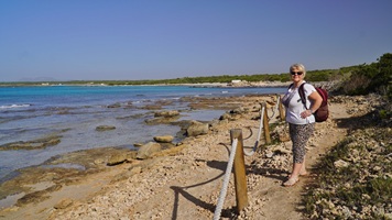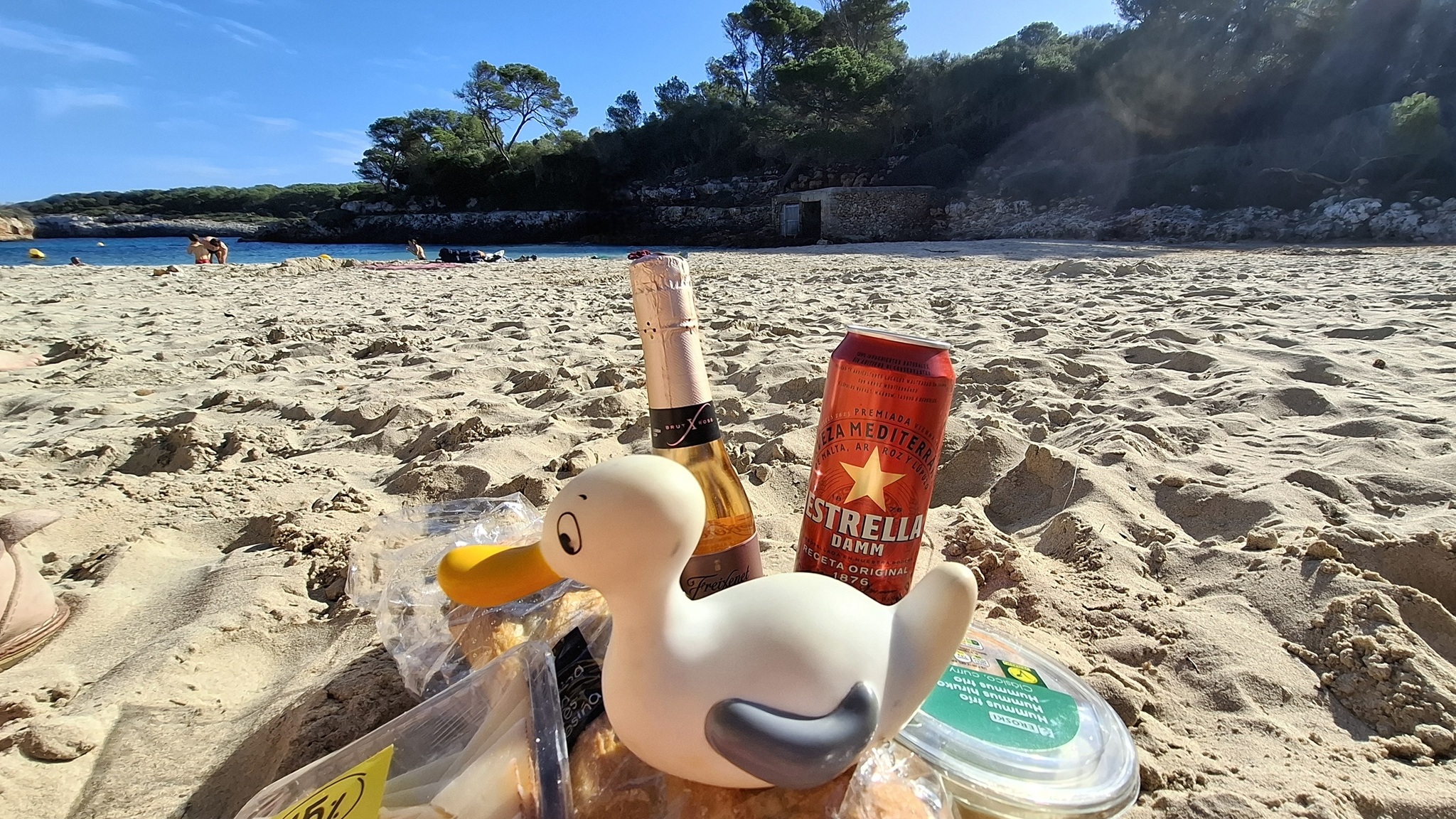 Am Morgen springen wir zuerst in den Pool. Es ist dann doch recht frisch und so geht es schnell zum Frühstück. Dann starten wir in den Tag und fahren in das nahe Sineu. Hier bummeln wir durch den pitoresken Ort, der recht verschlafen daliegt, da es jenseits der Saison ist und hier nur mittwochs Hochbetrieb herrscht, wo hier der größte Wochenmarkt der Insel stattfindet. Nach einer ausführlichen Runde fahren wir weiter via Porreres nach Ses Salines, wo wir in der lokalen Panaderia noch schnell leckeres Brot erstehen. Dann fahren wir weiter nach Colonia Sant Jordi. Am Hotel Marqués am westlichen Ortsrand beginnen wir unsere kleine Küstenwanderung in Richtung Platja des Trenc. Der Weg führt immer entlang des Strandes und an der Platja des Peregons Grans machen wir dann eine ausgiebige Badepause. Bei herrlichem Sonnenschein und 22°C Wassertemperatur chillen wir hier am Strand. Dann geht es zurück zum Auto und wir fahren weiter nach Campos, wo wir noch ein paar Einkäufe erledigen. Dann geht es retour nach Maria de la Salut, wo wir am Abend den Grill anwerfen, um dort den leckeren Lubina (Wolfsbarsch) und ein Entrecote aufzulegen. Dazu darf der obligatorische Rotwein natürlich nicht fehlen.