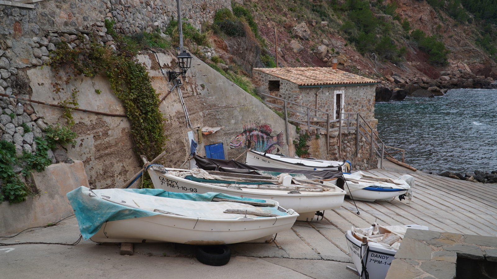 Die Vorhersage des Wetters sieht für die kommenden Tage nicht sonderlich gut aus. Doch am Morgen ist es zwar bedeckt aber angenehm mild. Da es im Südosten schon mam Morgen regnet, verschieben wir unseren Ausflug in diese Ecke und fahren stattdessen wieder in Richtung Valldemossa. Dort finden wir schnell einen Parkplatz und bummeln durch den heute verschlafenen Ort. Das ist in der Saison freilich anders und umso mehr genießen wir die Ruhe. Nach dem Bummel rund um die Kartause fahren wir hinunter nach Port de Vallemossa. Schon die Fahrt hinunter ist genial und unten angekommen, sind wir hier allein auf weiter Flur. Wir haben ein tolles Panorama entlang der wilden Nordwestküste bis hin zu Sa Foradada, wo wir dieser Tage ebenfalls waren. Dann geht es wieder hinauf zur MA-10, der wir dann via Banyalbufur und Estellenc weiter folgen. Kurz hinter Estellenc machen wir am Mirador de Ses Ànimes und dem dortigen Torre del Verger einen Fotostopp. Der alte Wachturm liegt sehr exponiert an der Küste und bietet tolle Ausblicke. Weiter geht die Fahrt auf der Tramuntanastraße MA-10 über den Pass Coll de Sa Gramola bis wir dann Andratx erreichen. Von dort geht unsere Fahrt weiter nach Sant Elm. Inzwischen wird es immer dunkler und über dem Meer sieht man schon die Regenwolken heranziehen. In Sant Elm reicht es gerade noch für einen Bummel durch den Ort und den Blick hinüber nach Sa Dragonera. Dann sputen wir uns, dass wir zurück zum Auto kommen. Nachdem schon die ersten dicken Tropfen herunterkommen, fängt es kaum, dass wir das Auto erreicht haben, intensiv an zu regnen und zu gewittern, so dass die zweite Wischerstufe es kaum schafft. Via Palma und die via Cintura fahren wir dann nach Inca, wo wir schnell noch ein paar Einkäufe erledigen und von dort weiter zurück nach Maria de la Salut. Am Abend ist es dann trocken und wir hoffen, dass wir morgen besseres Wetter haben.