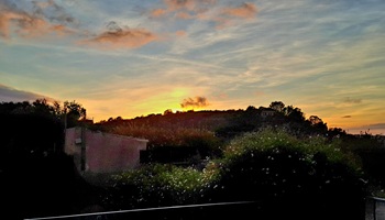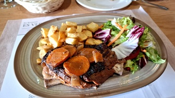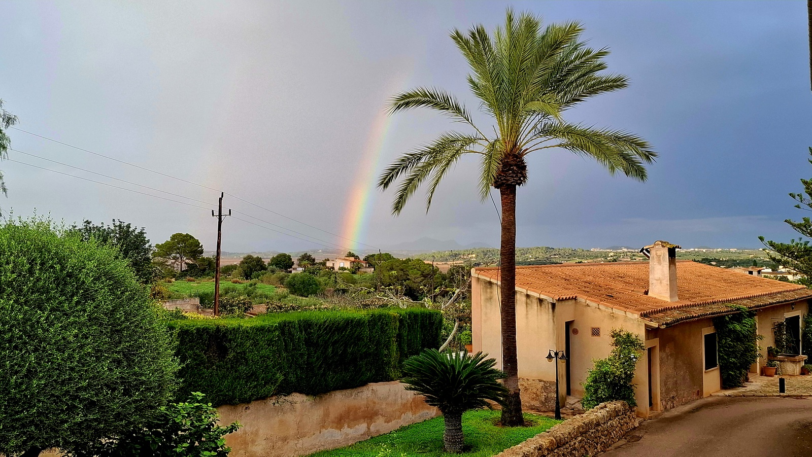Für heute prognostiziert der spanische Wetterdienst AEMET noch moderates Wanderwetter. Daher brechen wir bereits kurz nach 08:00 Uhr in Richtung Tramuntana auf. Via Inca fahren wir nach Alaró. Dort sehen wir schon unser Wanderziel, das Castell d' Alaró oben auf den Felsen bei Alaró liegen. Zum Startpunkt beim Hotel L' Hermitage kurz vor Orient geht dann unsere weitere Fahrt, wo wir dank der frühen Stunde auch schnell einen der raren Parkplätze ergattern. Dort starten wir unsere Wanderung, welche anfangs durch einen alten Olivenbaumhain führt und dann in Serpentinen hinauf zur Pla des Pouet. Von dort geht es dann nochmals teilweise steil hinauf zum Castell d'Alaró. Obwohl es zwischendurch ziemlich dunkel wird und einige Tropfen fallen, erreichen wir das Gipfelplateau und genießen von hier eine tolle Aussicht über die Insel bis hin nach Palma. Dann geht es wieder nach unten und die Finca Es Verger ist unser nächstes Ziel. Das rustikale Restaurant ist Kult auf der Insel und so kehren wir hier ein, um die unvergleichliche Milchlammschulter zu probieren. Nach der leckeren Mittagspause geht es dann wieder nach oben zur Pla des Pouet und von dort auf teilweise rutschigen Weg wieder hinab in Richtung Orient. Dann fahren wir weiter über den Coll d'Honor in Richtung Bunyola. Die Rückfahrt zur Roqueta gestalten wir über Platja de Muro, wo wir eigentlich nochmals schnell ins Wasser springen wollten. Als wir aber fast angekommen sind, zieht ein Regenschauer über die Insel, so dass wir nur nochmals einen kurzen Besuch am Strand machen, dann aber nach Maria de la Salut zurückfahren. Nachdem wir auch hier von einem Regenschauer begrüßt werden, ist es dann aber schnell wieder trocken, so dass wir den Sonnenuntergang auf unserer Terrasse zelebrieren können.