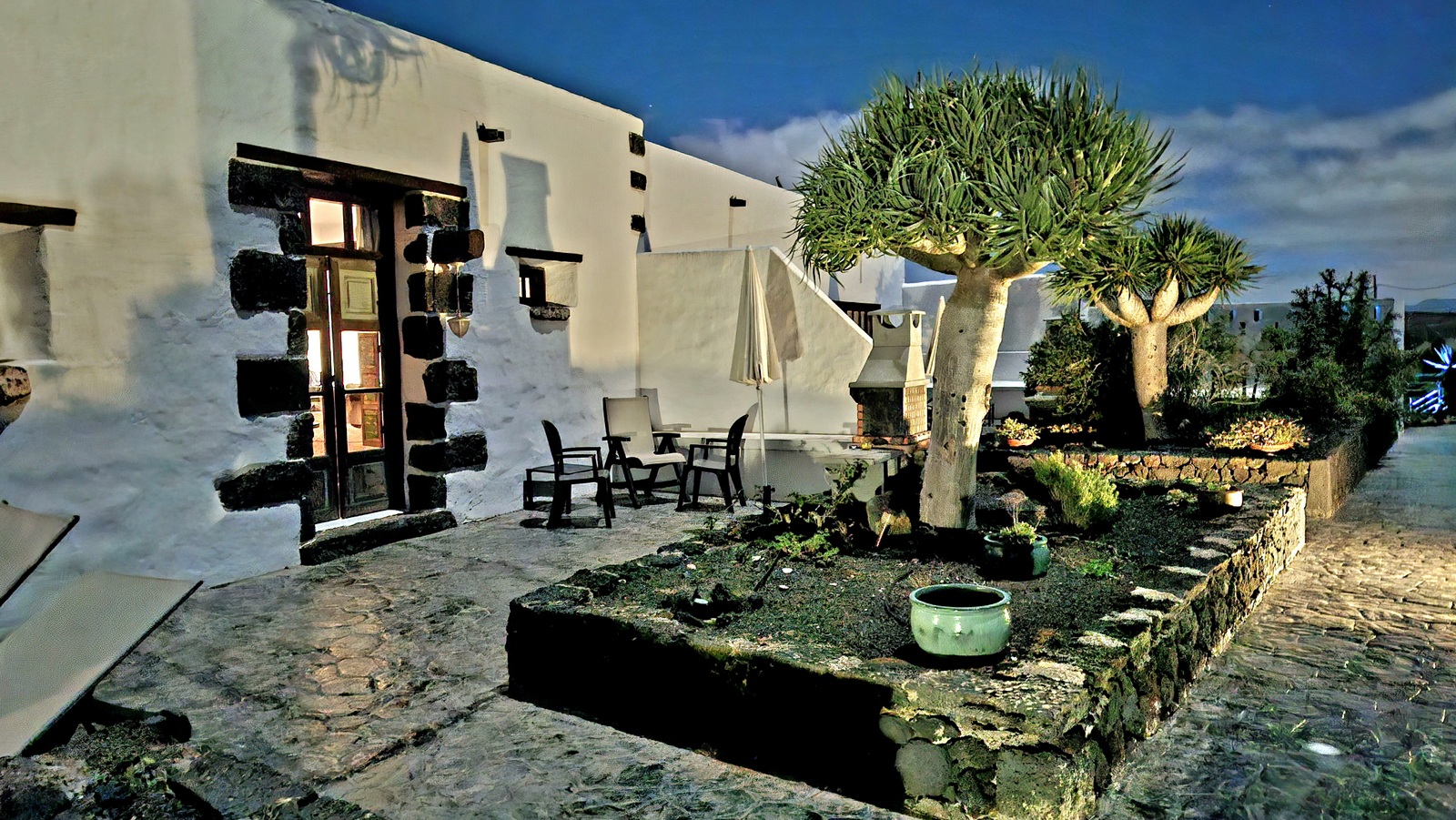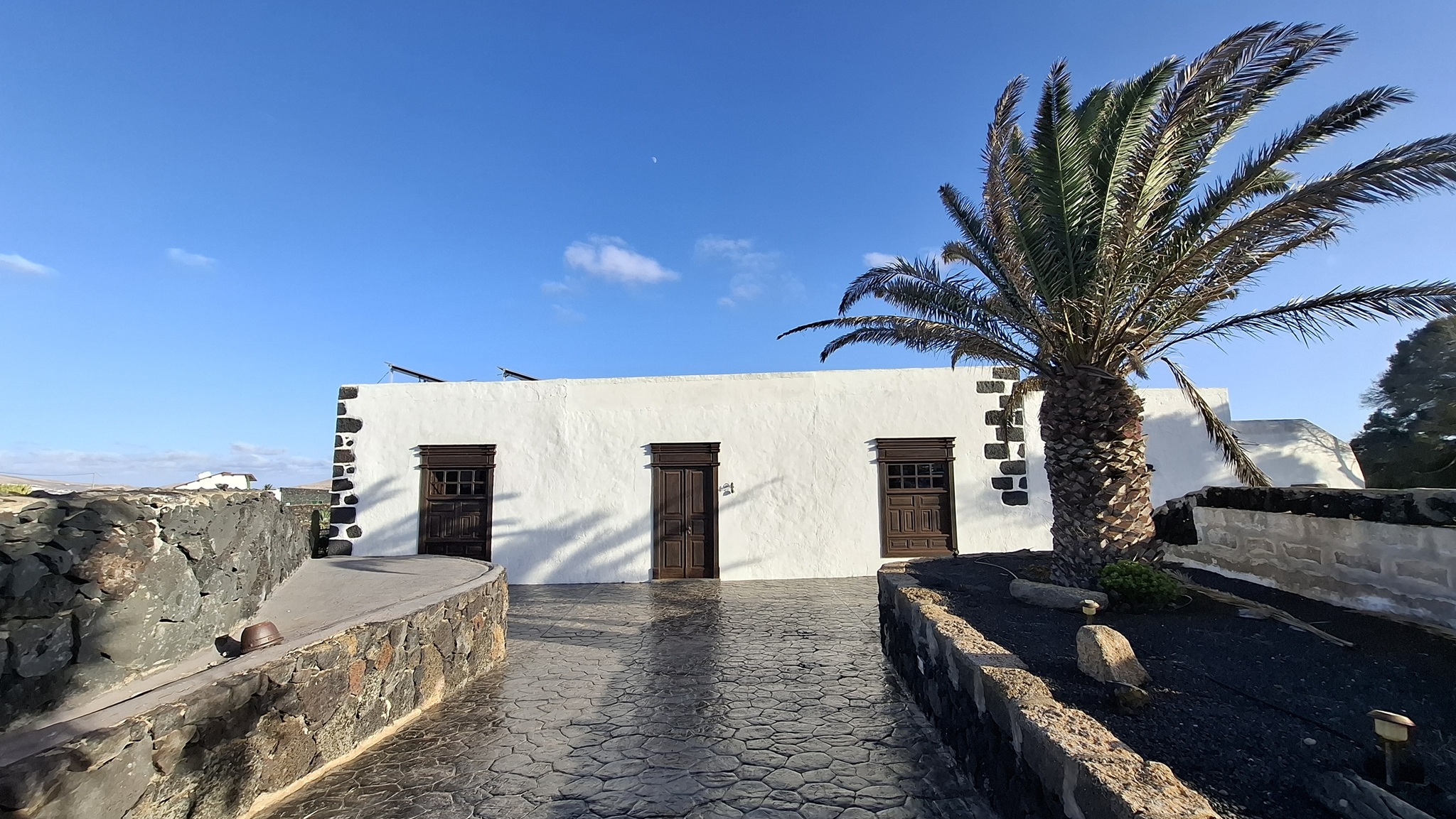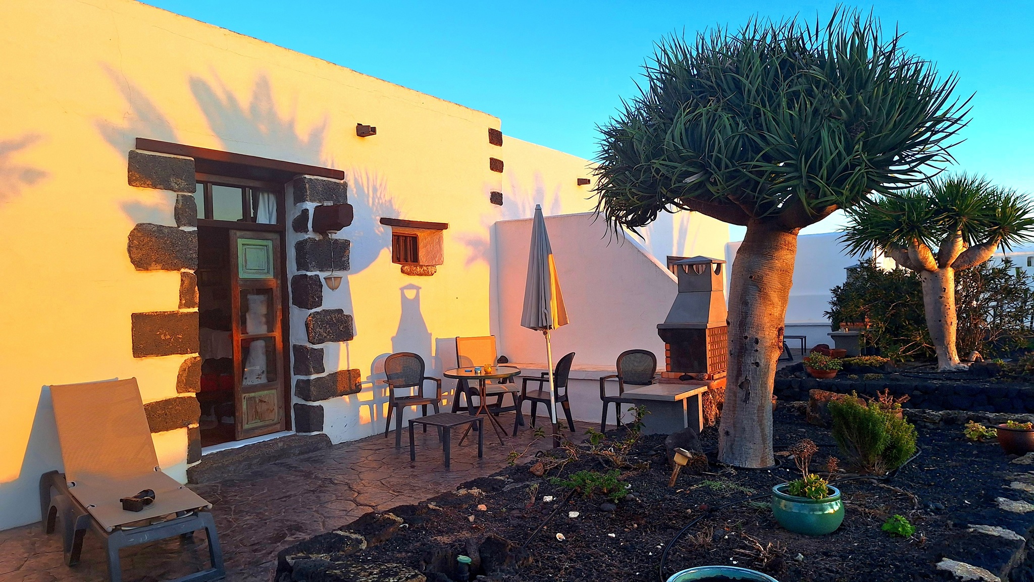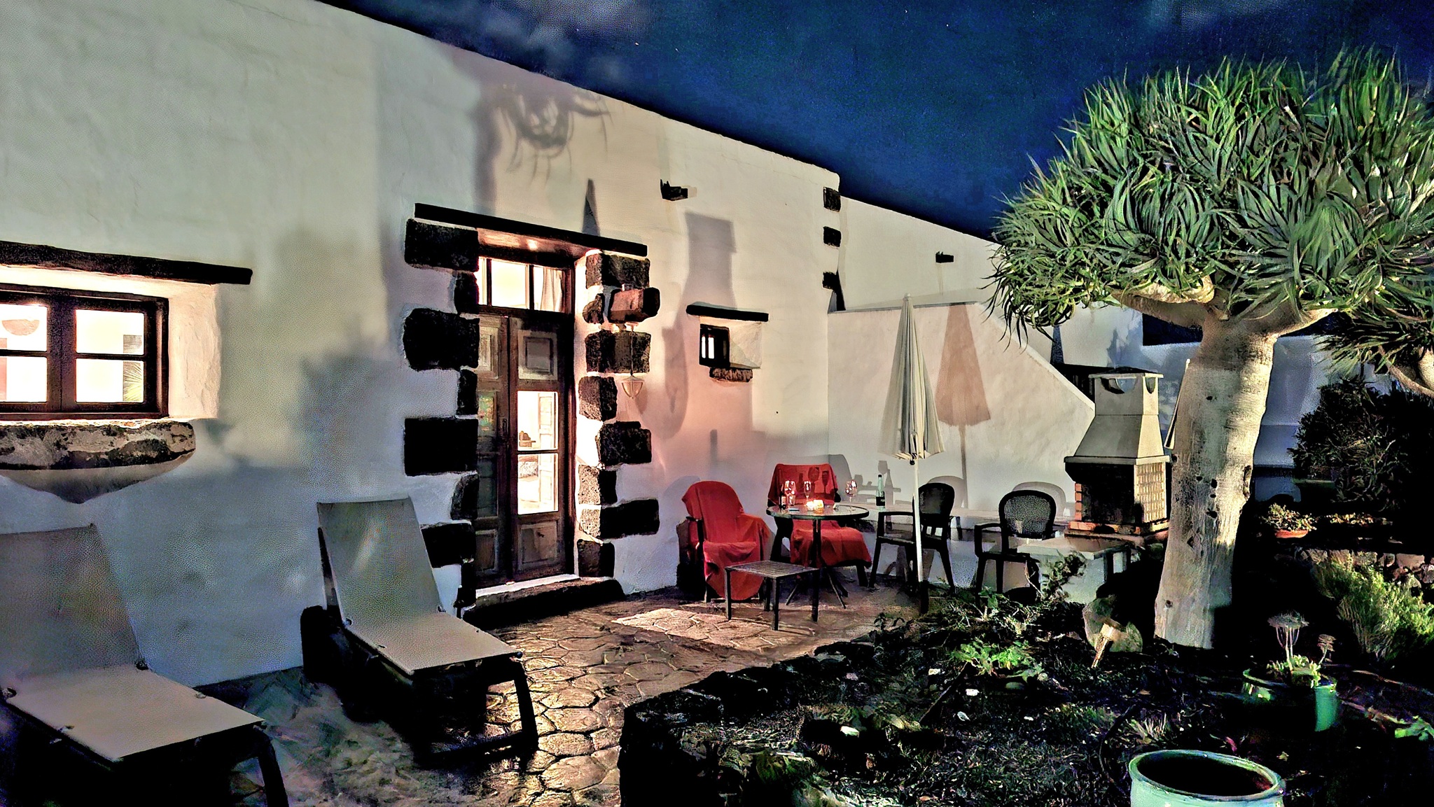 Wie so oft starten wir inmitten der Nacht in Richtung Flughafen BER. Trotz des nebligen Winterwetters kommen wir pünktlich am Flughafen an und unser Flug mit easyJet bringt uns ebenso pünktlich nach Arrecife auf Lanzarote. Dort angekommen übernehmen wir innerhalb von wenigen Minuten nach der Landung unseren Mietwagen und schon kurze Zeit später stehen wir im HiperDino in San Bartolome, um unsere Lebensmittelvorräte für die nächsten Tage zu füllen. Einfach genial wie unkompliziert das hier alles abläuft - da haben wir letzte Woche auf Mallorca durchaus anders erlebt. Nach kurzer Fahrt hinauf in Richtung Mozaga erreichen wir dann unser Quartier für die nächsten Tage - die Finca Isabel. Hier werden wir bereits von Clara, unserer Vermieterin, erwartet. Schnell checken wir ein und genießen dann die Abendstimmung auf unserer Terrasse bei lauen 23°C und einem Glas Rotwein.