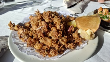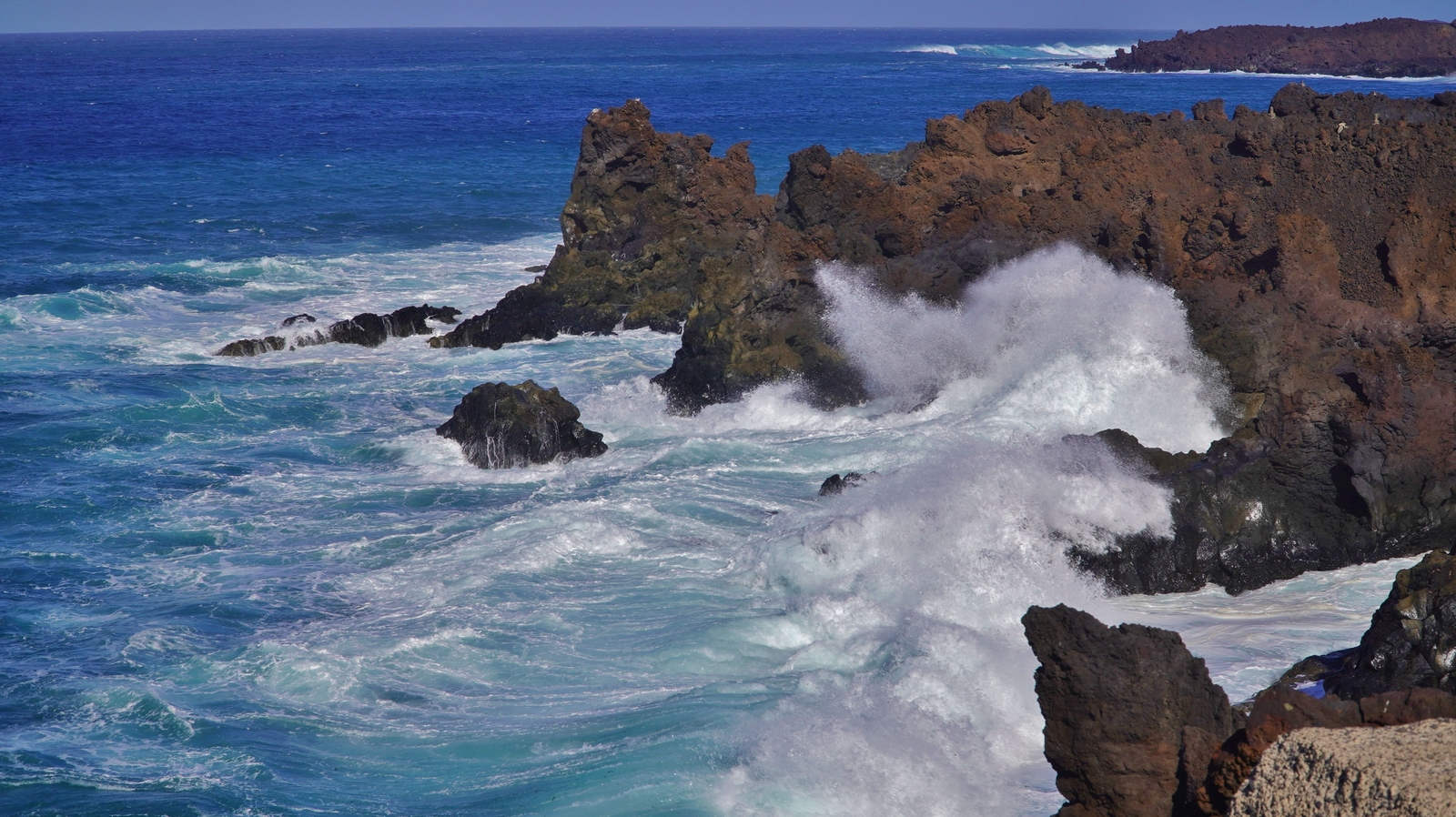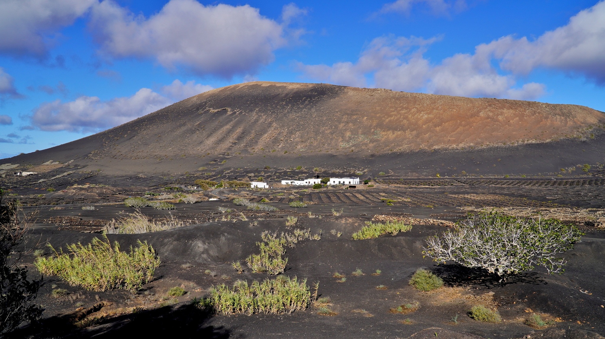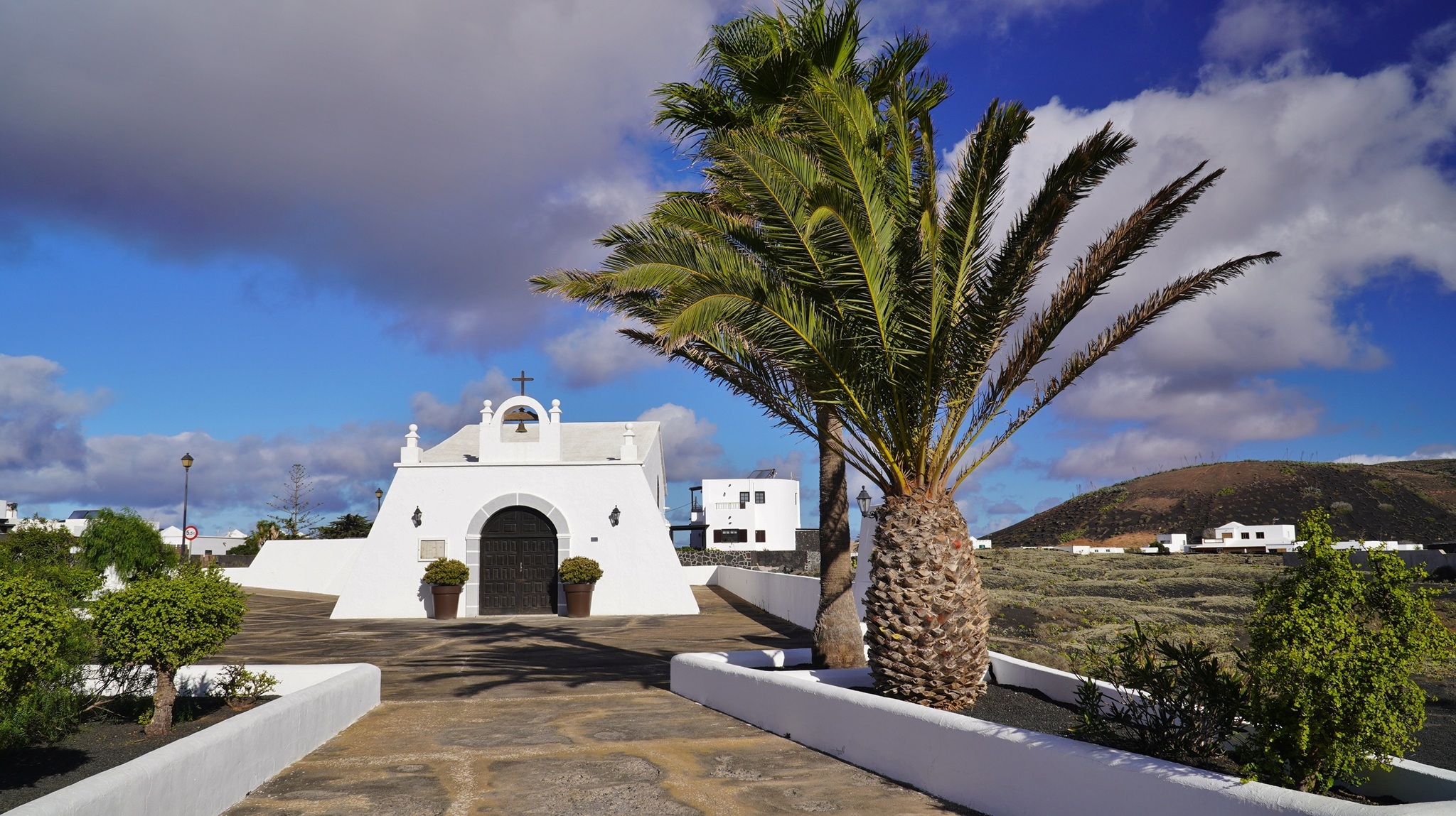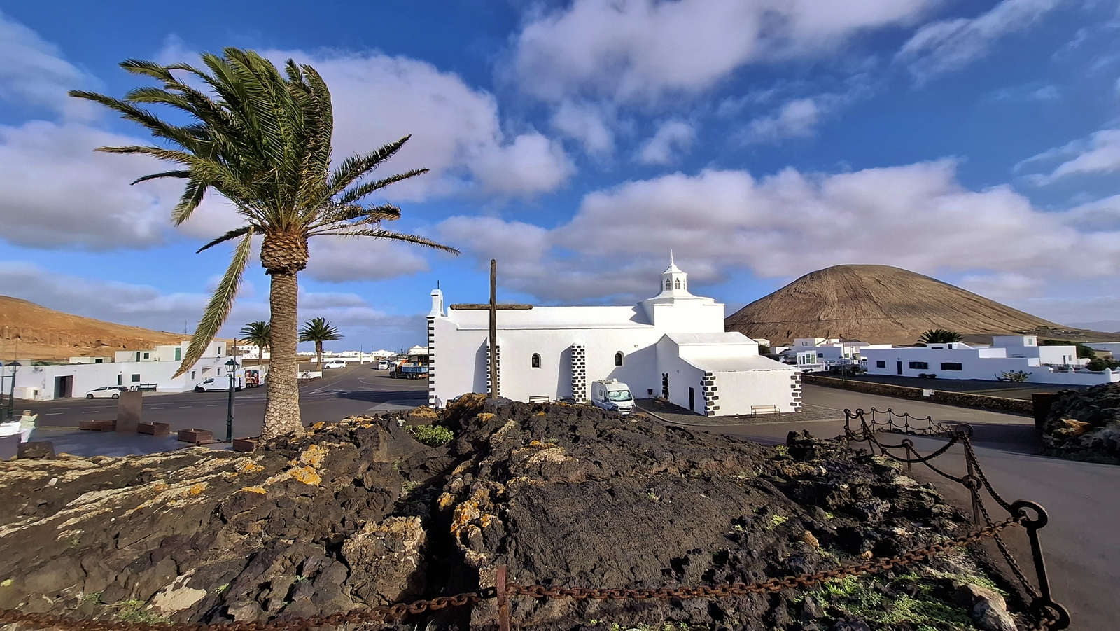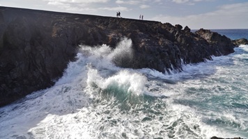Nach einem ausgiebigen Frühstück auf unserer Terrasse fahren wir am Morgen auf der LZ-20 via Tao und La Vegueta in Richtung Mancha Blanca, wo wir an der sehr fotogenen Iglesia Nuestra Señora de los Dolores einen ersten Fotostopp einlegen. Weiter geht unsere Fahrt über den Timanfaya N.P. in Richtung Süden. Bei Yaiza biegen wir in Richtung Los Hervideros ab. Dort angekommen, schauen wir den heute besonders heftigen Wellen und der Brandung zu, welche in den Felshöhlen an die Küste hereinbrausen. Nach unserem Besuch fahren wir weiter nach Playa Blanca, wo wir über Mittag an der Playa de Papagayo zugange sind. Trotz der intensiven Sonne und den angenehmen Temperaturen weht auch hier ein strammer Wind, so dass wir gut "paniert" sind. So brechen wir am Nachmittag wieder auf und fahren die rustikale Piste nach Playa Blanca zurück. Bevor wir zum Abendessen nach El Golfo fahren, machen wir noch einen Abstecher zum Faro de Pechiguera. Dort ist seit unserem ersten Aufenhalt auf der Insel vor ca. 30 Jahren sehr viel gebaut worden und man erkennt es kaum wieder. Nach dem Abendessen im "Casa Rafa" in El Golfo fahren wir durch das Weingebiet La Geria wieder zurück nach Mozaga.