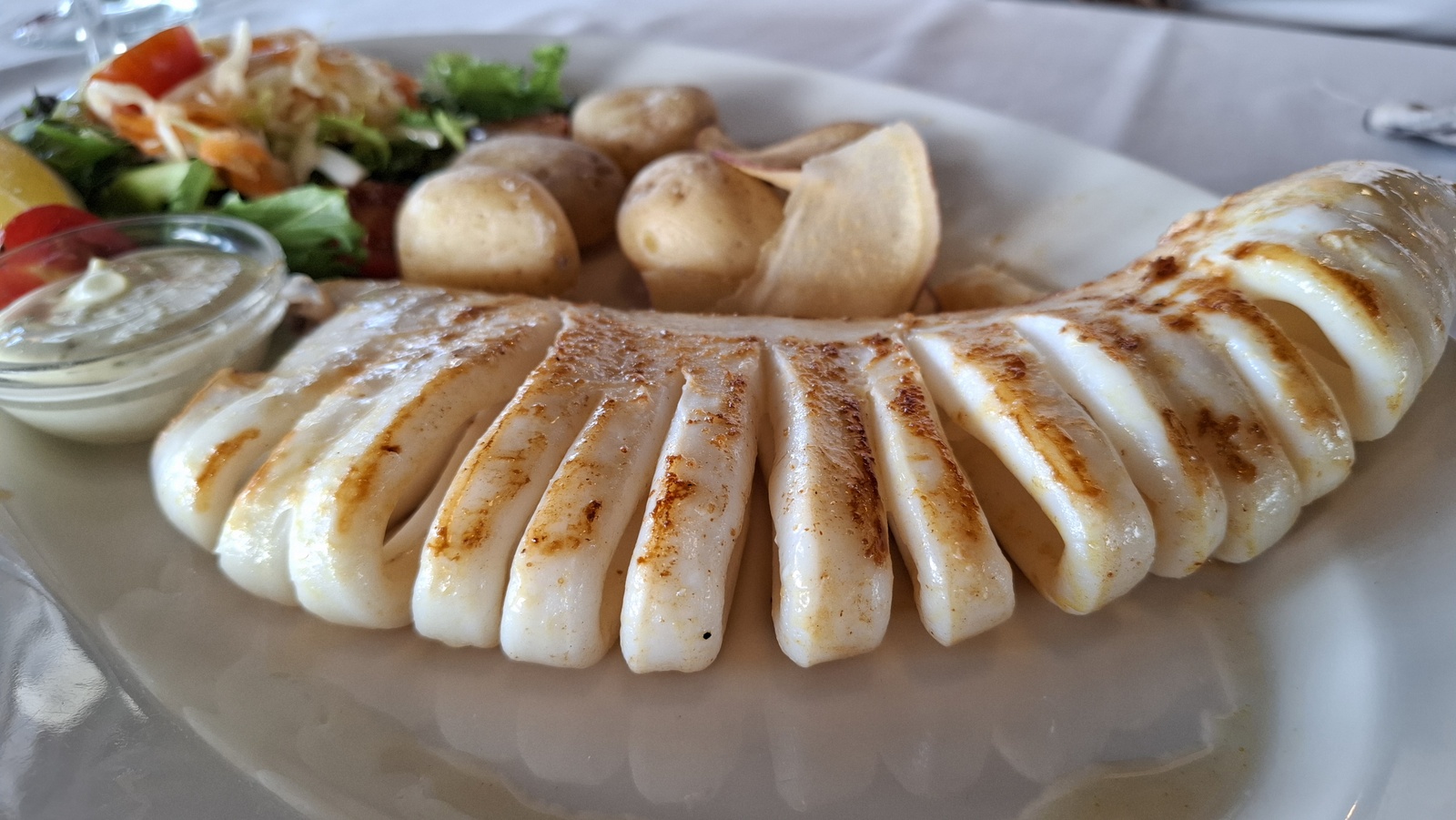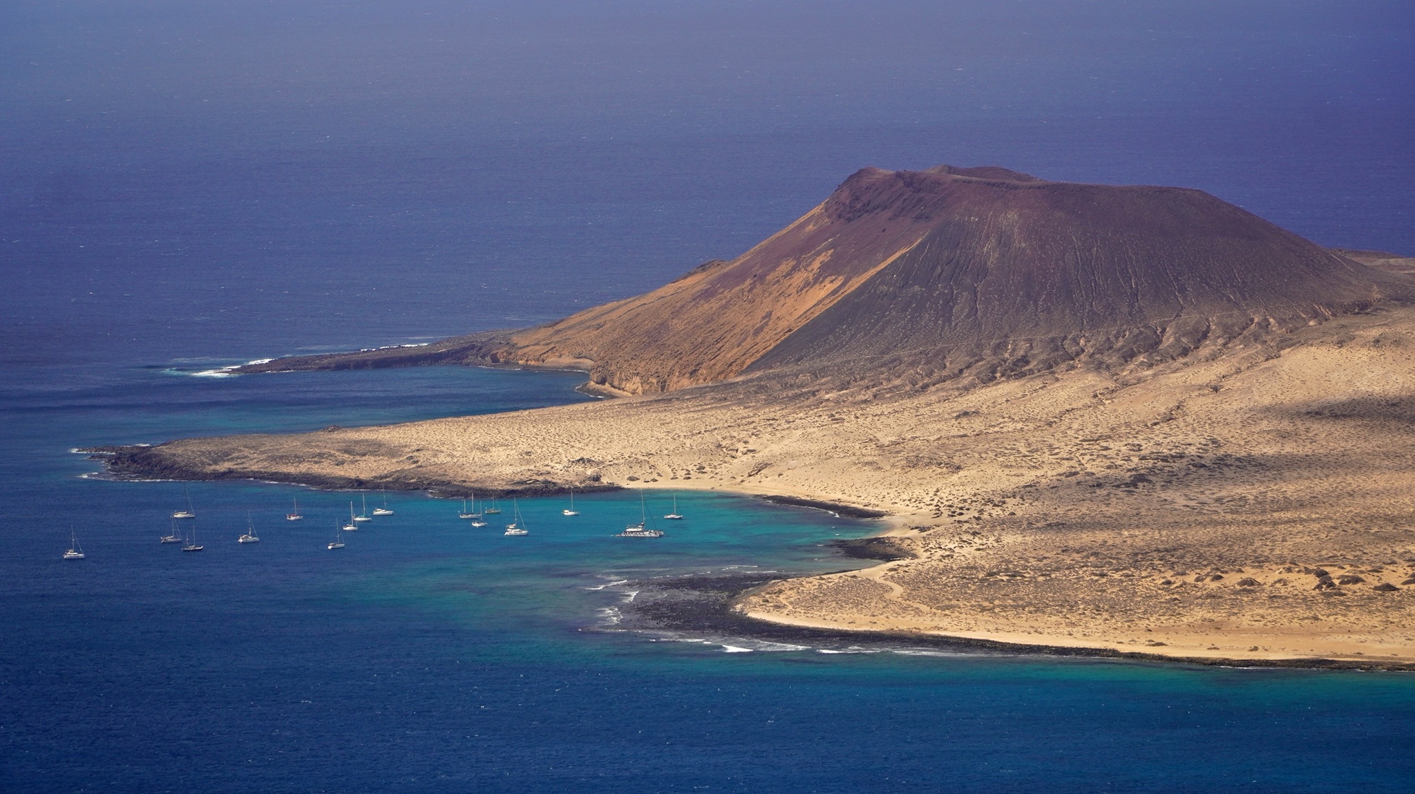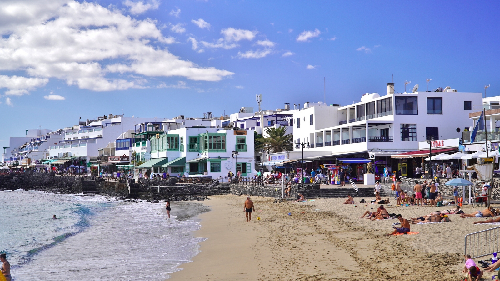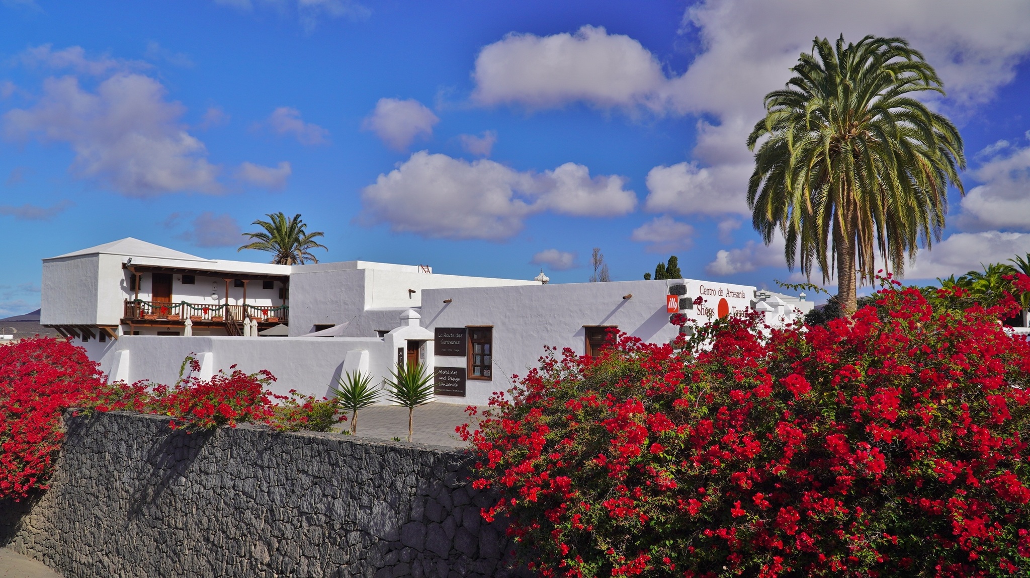 Natürlich findet unser Frühstück auch heute wieder auf Terrassien statt. Danach starten wir in Richtung Teguise, wo wir nach unserer Ankunft durch die ehemalige Inselhauptstadt schlendern. Hier wird gerade der Weihnachtsmarkt aufgebaut und trotzdem liegt der kleine Ort mit seinen vielen kolonialen Häusern am Morgen noch recht verschlafen da. Teguise hat viel Charme und so ist es immer ein Pflichtbesuch, wenn wir hier auf der Insel sind. Anschließend wollten wir eigentlich hinauf zum Castillo de Santa Bárbara, was aber leider heute geschlossen hat. So fahren wir ein paar Kilometer weiter hinunter an die Nordwestküste nach Famara. Hier bummeln wir am weiten Strand vor imposanter Felskulisse und schauen den vielen Surfern zu, welche hier zugange sind. Gegenüber liegen auch La Graciosa, Montaña Clara und Alegranza und runden die Szenerie ab. Dann fahren wir weiter via Soo, La Santa und Tinajo in Richtung Timanfaya. Nach einem kurzen Stopp am Besucherzentrum fahren wir durch die Lavalandschaft des Nationalparks, welche immer wieder sehr beeindruckend ist. Da wir zuletzt mehrmals dort waren, geht heute die Fahrt weiter zur Kamelstation, wo wir ebenfalls nur kurz halten. Der Kamelritt passt auch nicht mehr so recht in die heutige Zeit und es gibt auch wenig Interessenten für dieses "Vergnügen". Dann führt uns der weitere Weg ganz in den Inselsüden nach Playa Blanca. Wir bummeln entlang der Promenade wo wir zwar das warme Wetter und den Sonnenschein genießen, uns dann aber doch zur Weiterfahrt entschließen, da sich der Ort seit unserem ersten Besuch vor fast 30 Jahren doch sehr touristisch verändert hat. Dann zieht es uns nach El Golfo, wo wir in einem der dortigen Lokale essen wollen. Unsere Wahl fällt wie schon zuletzt auf die Casa Rafa, wo wir allerdings aufgrund der hohen Nachfrage fast eine Stunde warten müssen, bevor wir einen Tisch ergattern. Nachdem wir sehr gut gegessen haben, fahren wir im goldgelben Licht der Abendsonne wieder durch den Timanfaya N.P. und La Geria zurück in die Casa Isabel.
