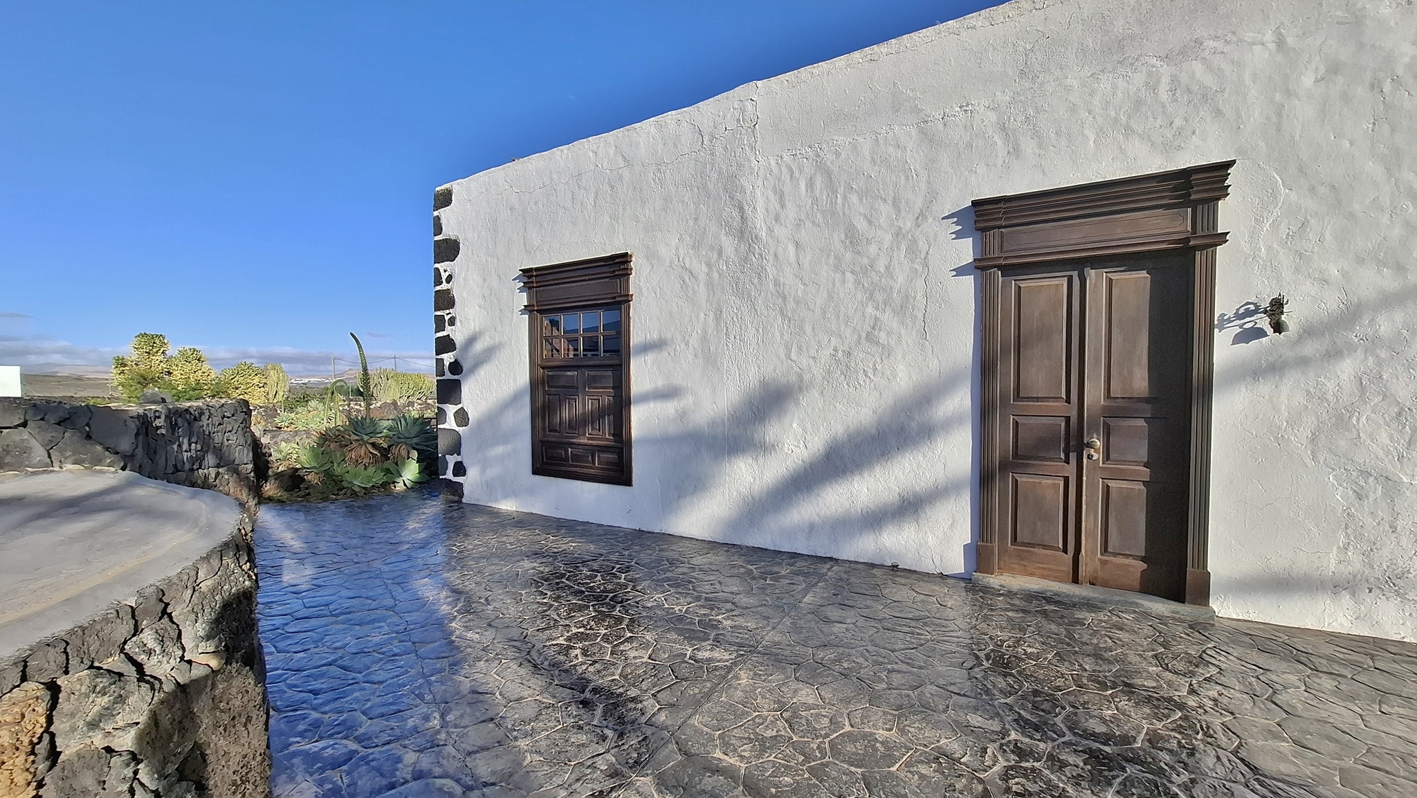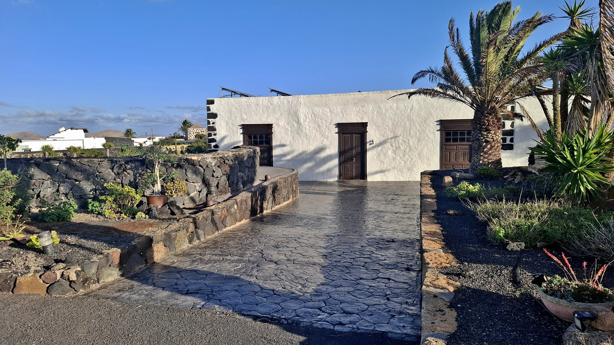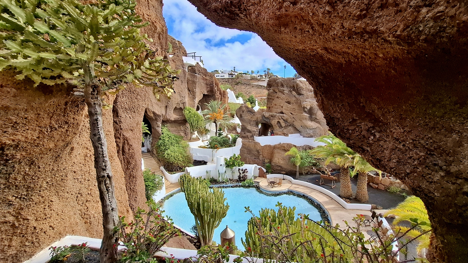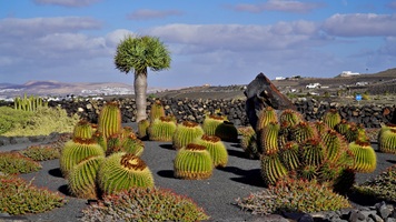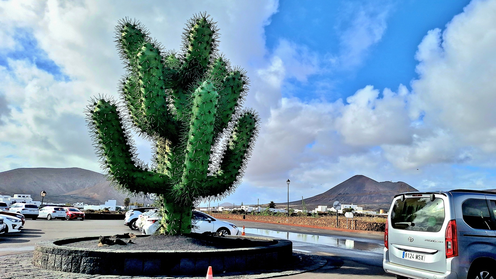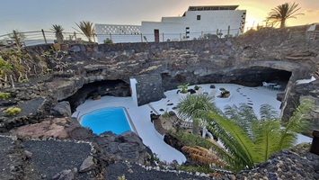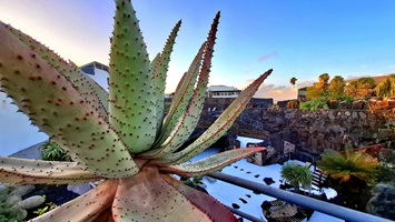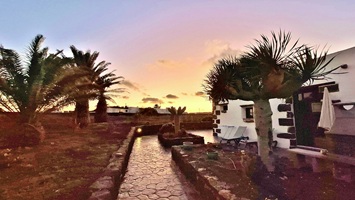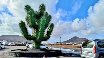 In der Nacht hat es geregnet, so dass zwar unser Frühstück auf Terrassien stattfinden kann, wir jedoch unseren ursprünglichen Plan zu einen Ausflug auf die Nachbarinsel La Graciosa fallen lassen. Dann fahren wir via Tahiche zur Costa Teguise. Hier hatten wir im Jahr 2000 im Hotel Neptuno unser Quartier und wir wollen uns einfach mal umschauen, was sich in den letzten 25 Jahren hier getan hat. Nach einem ersten kurzen Rundgang kommen wir aber recht schnell zu der Erkenntnis, dass das hier nicht mehr nach unseren Gusto ist. So fahren wir weiter nach Norden nach Arrieta, wo wir an der Playa de la Garita einen kurzen Fotostopp einlegen. Dann geht die Fahrt weiter durch Arrieta bis wir auf der Uferstraße die nächste kleine Ortschaft Punta Mujeres erreichen. Nach einer kurzen Pause an der Muelle des Mini-Fischerhafens fahren wir zurück in Richtung Süden, um via Mala in die kleine Urbanización Charco del Palo zu erreichen. Die Besonderheit des kleinen Weilers ist, dass es ein reines Nudistendorf ist. Hier gibt es viele schöne Häuschen, wenn auch die Bademöglichkeiten auf einige Felsenbuchten beschränkt sind. Trotzdem hat der Ort mit seiner dünenartigen Umgebung einiges zu bieten. Wir fahren wir durch Guatiza und vorbei am Jardin de Cactus. Dann erreichen wir unser nächstes Ziel, das Museo LagOmar in Nazaret. Hier besichtigen wir das in den Felsen gebaute ehemalige Haus des bekannten Schauspielers Omar Sharif, welches dieser beim Bridgespiel einfach mal so verzockt hat. So kommen wir in den Genuss, diese tolle Anwesen, welches heute Museum ist, besichtigen zu können. Nach dem Besuch Machen wir noch einen Abstecher zur Fundación César Manrique, welche sich im ehemaligen Wohnhaus des bekanntesten Inselkünstlers befindet. Da wir in den letzten Jahren schon mehrmals hier waren, verzichten wir auf einen Besuch, wobei wir aber allen Touristen, welche das erste Mal auf der Insel sind, ein Besuch dringend empfehlen. Auf der Rückfahrt zu unserer Unterkunft in Mozaga machen wir noch einen kurzen Stopp am Monumento al Campesino. Das wurde ebenfalls von César Manrique erschaffen und bietet wirklich tolle Fotomotive. Zurück in der Finca Isabel springen wir noch einmal kurz in den eiskalten Pool und wärmen uns dann in der Abendsonne auf unserer Terrasse.