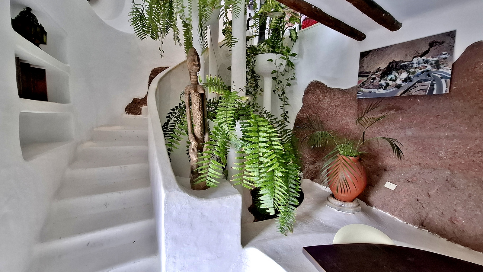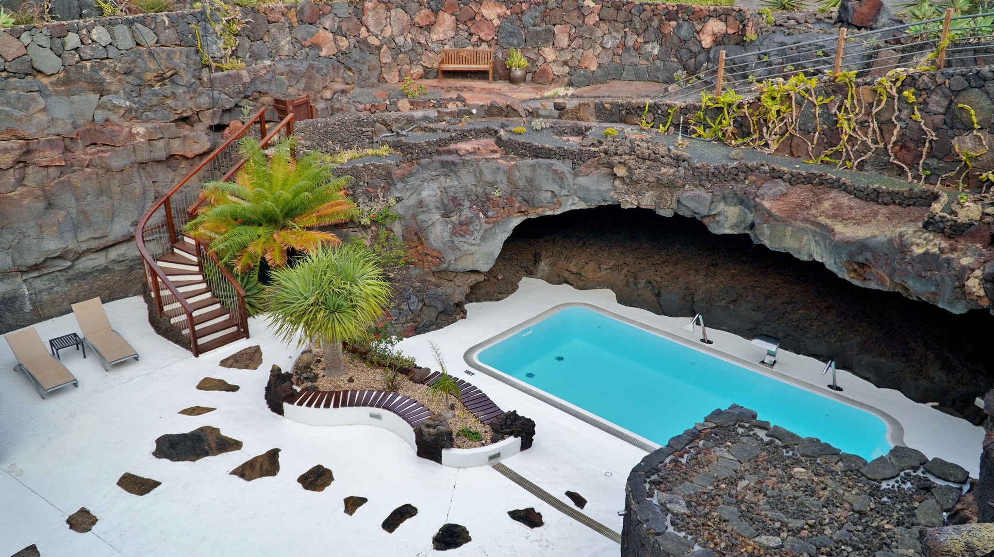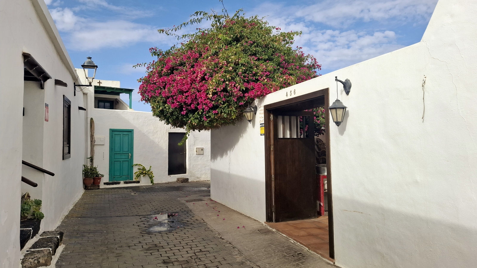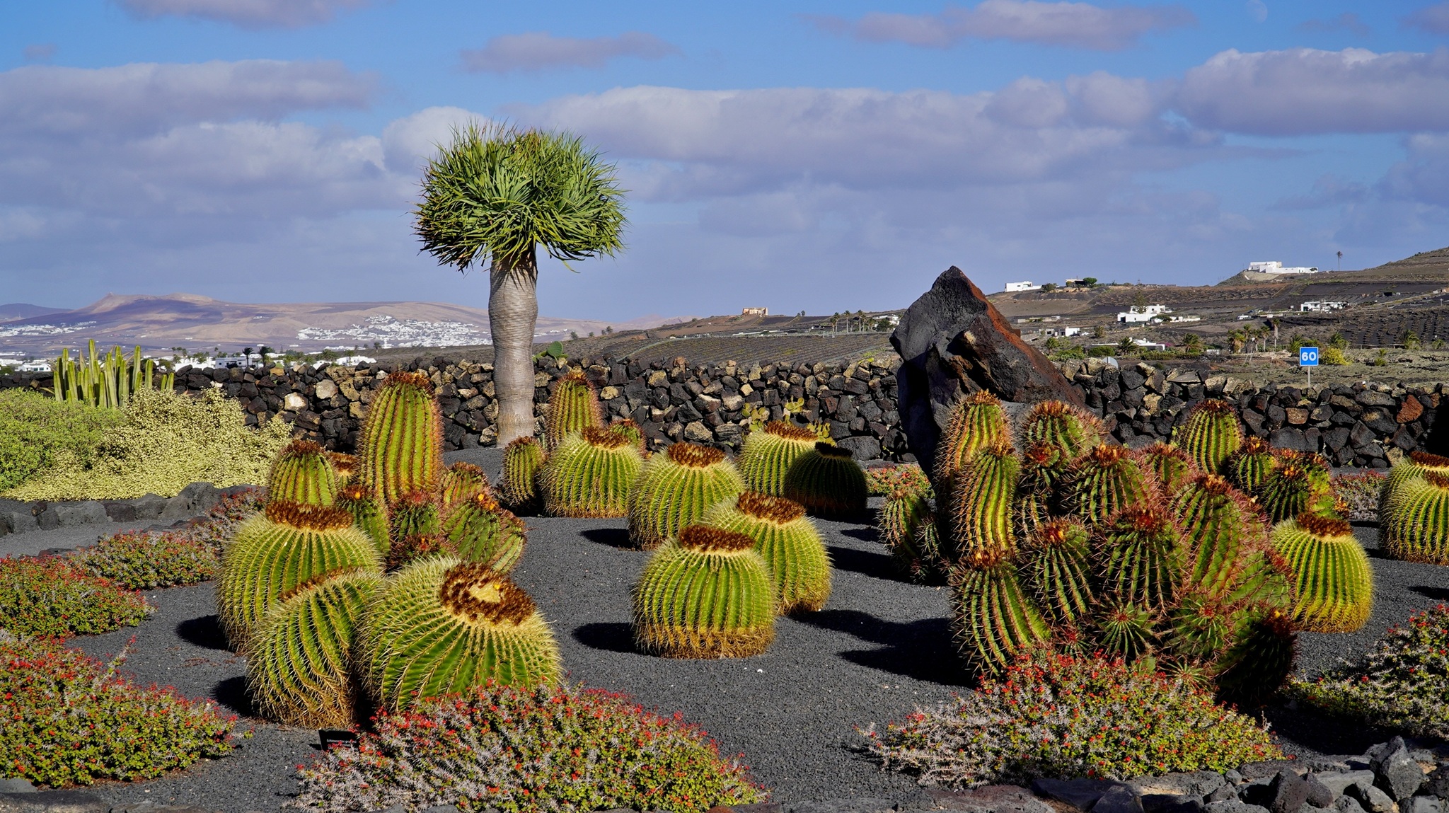 In der Nacht hat es geregnet, so dass zwar unser Frühstück auf Terrassien stattfinden kann, wir jedoch unseren ursprünglichen Plan zu einen Ausflug auf die Nachbarinsel La Graciosa fallen lassen. Dann fahren wir via Tahiche zur Costa Teguise. Hier hatten wir im Jahr 2000 im Hotel Neptuno unser Quartier und wir wollen uns einfach mal umschauen, was sich in den letzten 25 Jahren hier getan hat. Nach einem ersten kurzen Rundgang kommen wir aber recht schnell zu der Erkenntnis, dass das hier nicht mehr nach unseren Gusto ist. So fahren wir weiter nach Norden nach Arrieta, wo wir an der Playa de la Garita einen kurzen Fotostopp einlegen. Dann geht die Fahrt weiter durch Arrieta bis wir auf der Uferstraße die nächste kleine Ortschaft Punta Mujeres erreichen. Nach einer kurzen Pause an der Muelle des Mini-Fischerhafens fahren wir zurück in Richtung Süden, um via Mala in die kleine Urbanización Charco del Palo zu erreichen. Die Besonderheit des kleinen Weilers ist, dass es ein reines Nudistendorf ist. Hier gibt es viele schöne Häuschen, wenn auch die Bademöglichkeiten auf einige Felsenbuchten beschränkt sind. Trotzdem hat der Ort mit seiner dünenartigen Umgebung einiges zu bieten. Wir fahren wir durch Guatiza und vorbei am Jardin de Cactus. Dann erreichen wir unser nächstes Ziel, das Museo LagOmar in Nazaret. Hier besichtigen wir das in den Felsen gebaute ehemalige Haus des bekannten Schauspielers Omar Sharif, welches dieser beim Bridgespiel einfach mal so verzockt hat. So kommen wir in den Genuss, diese tolle Anwesen, welches heute Museum ist, besichtigen zu können. Nach dem Besuch Machen wir noch einen Abstecher zur Fundación César Manrique, welche sich im ehemaligen Wohnhaus des bekanntesten Inselkünstlers befindet. Da wir in den letzten Jahren schon mehrmals hier waren, verzichten wir auf einen Besuch, wobei wir aber allen Touristen, welche das erste Mal auf der Insel sind, ein Besuch dringend empfehlen. Auf der Rückfahrt zu unserer Unterkunft in Mozaga machen wir noch einen kurzen Stopp am Monumento al Campesino. Das wurde ebenfalls von César Manrique erschaffen und bietet wirklich tolle Fotomotive. Zurück in der Finca Isabel springen wir noch einmal kurz in den eiskalten Pool und wärmen uns dann in der Abendsonne auf unserer Terrasse.