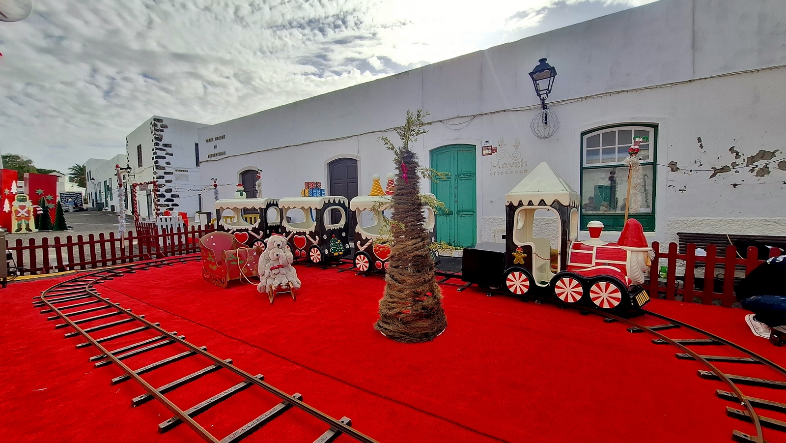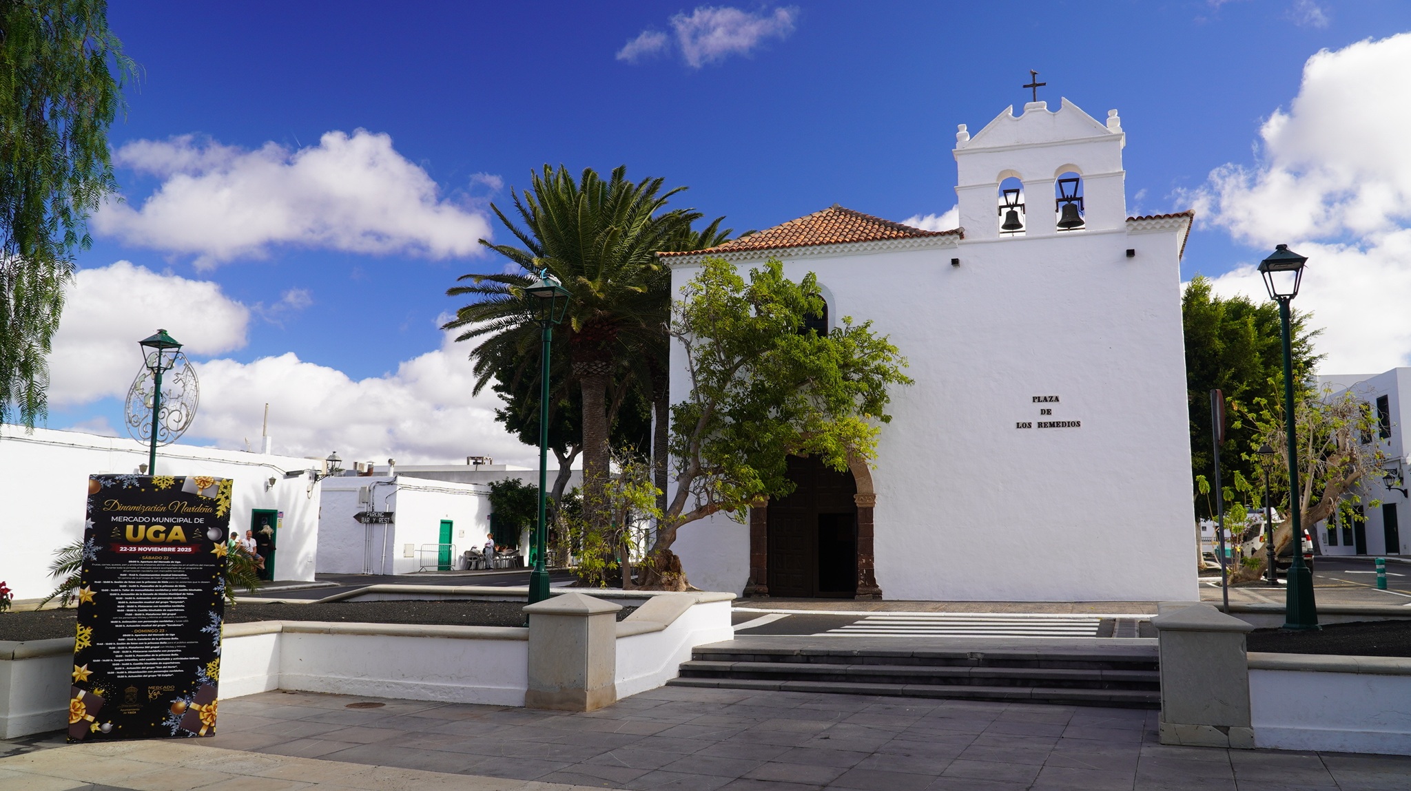 Wir sind am Morgen schon recht früh wach, da unser Biorhythmus schon eine Stunde weiter ist. Nach einem Frühstück auf unserer Terrasse machen wir uns nach Tahiche auf den Weg. Hier wollten wir in unserer Lieblingsbäckerei frisches Brot erstehen aber eine endlose Schlange hat uns dann schnell zum Weiterfahren animiert. Vorbei am Monumento al Campesino fahren wir auf der LZ-30 durch das Weinbaugebiet La Geria. In Masdache machen wir einen Fotostopp an der dortigen kleinen Ermita de Santa María Magdalena. Der weitere Weg führt uns durch die Weingebite von La Geria und an den Bodegas Stratus und La Geria machen wir einen kurzen Stopp und erstehen auch etwas zum Verkosten. Dann sind wir auch bereits in Uga, wo wir durch den kleinen verschlafenen Ort bummeln. Im Zentrum liegt die sehenswerte Kirche San Isidro Labrador. Weiter geht unsere Fahrt ins nahe gelegende Yaiza, was eines der Bilderbuchdörfer der Insel ist. Auch hier ist eine fast schon kitschig schöne Weihnachtslandschaft aufgebaut, wie wir sie derzeit überall auf der Insel finden. Rund um die Parroquia Nuestra Señora de los Remedios gibt es viele alte Häuser in typisch spanischer Kolonialarchitektur, welche dem Ort ein tolles Flair verleihen. Weiter geht unsere Fahrt zu den Salinas de Janubio. Diese waren vor Jahren bereits stillgelegt und inzwischen hat man auch den touristischen Wert der Anlage erkannt und diese wieder in Betrieb genommen. Via Playa Blanca geht unsere Fahrt weiter zu den bekannten Papagayo-Stränden. Nachdem wir unsere 3,-Euro Eintritt gelöhnt haben, fahren wir auf einer ruppigen Piste bis zum Parkplatz oberhalb der Strände und laufen dann zur nahen Playa del Pozo, wo wird den Nachmittag bei bestem Badewetter verbringen. Dann geht es zurück und wir fahren über die Hochebene von Femés via Arrecife wieder zurück in unsere Finca Isabel. Schon beim Eintreffen gibt es erste Regentropfen doch kaum haben wir den Grill angeworfen, überascht uns ein kurzer Regenschauer. Der verzieht sich dann aber schnell und wir hoffen für morgen wiederum auf angenehmes Wetter.