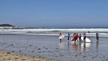 Unsere Woche auf Lanzarote ist wie im Flug vergangen. Nach einem letzten Frühstück haben wir schnell den Koffer gepackt und uns von Clara, unserer Vermieterin, verabschiedet. Bevor es zum Flughafen geht nutzen wir die Zeit, um nochmals in Richtung Teguise zu fahren. Leider scheint unser Ziel das Castillo de Santa Barbara länger geschlossen zu sein, so dass wir im Ort bleiben, um den dortigen Mercadillo de navidad zu besuchen. Hier gibt es die typischen Weihnachtsmarktbuden (...selbst einen Stand mit Thüringer Bratwurst), wenngleich es schon komisch ist, bei deutlich über 20°C an einem Glühweinstand vorbeizugehen. Dann fahren wir nochmals hinunter zum Surferstrand nach Famara, wo auch heute mächtige Wellen hereinbrausen. Dann führt uns unsere letzte Fahrt hinunter zum Aeropuerto, wo uns die easyJet überpünktlich zurück nach Berlin bringt.