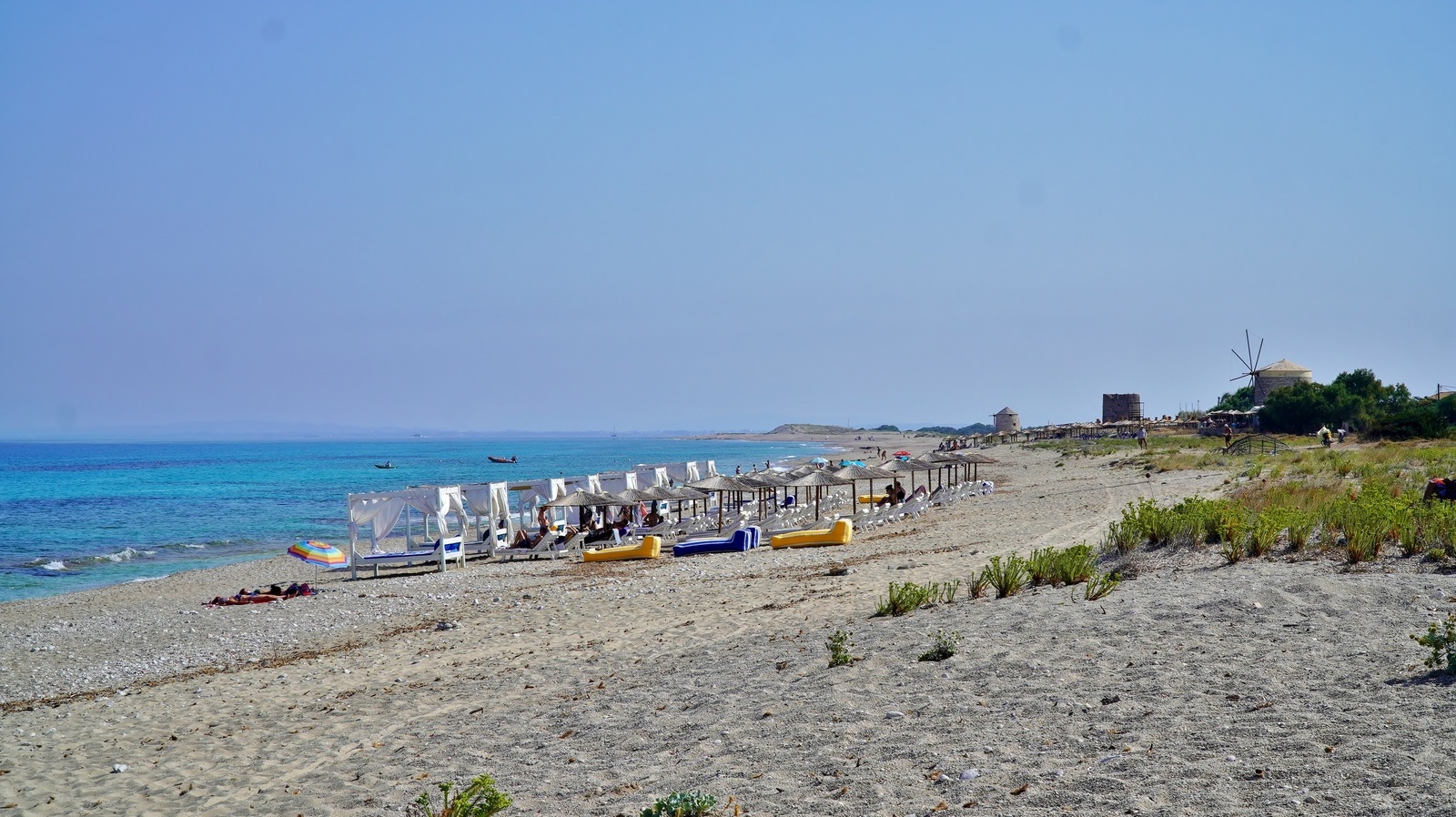 Am Morgen ist es heute etwas dunstig. Doch nur kurze Zeit später hat die aufsteigende Sonne wieder das Regiment übernommen und lacht vom blauen Himmel. Trotzdem ist es heute Morgen "frischer", d.h. es sind "nur" 28°C um 07:30 Uhr. Da heute ein ruhiger Tag sein soll, lassen wir uns für das Frühstück etwas mehr Zeit. Dann geht es vorbei am Moni Faneromenis hinunter zum Agios Ioannis Beach, wo wir bei herrlichen Sonnenschein den Vormittag verbringen. Während man dort in südlicher Richtung auf grüne Hügel blickt, zeigt der Blick in Richtung Norden auf eine Dünenlandschaft, welche eher an Fuerteventura erinnert. Gegen Mittag fahren wir wieder retour und passieren dabei die Pontonbrücke, welche gerade geöffnet wird, um die wartenden Segelboote durchzulassen. Nachdem wir in Lefkada Town noch frische Doraden und Rumpsteaks erstanden haben, fahren wir zurück in unsere Unterkunft, wo wir den Rest des Tages am Pool verbringen. Am Abend werfen wir dann letztmalig den Grill an und essen lecker zu Abend. Morgen heißt es dann schon wieder, die Koffer zu packen.
