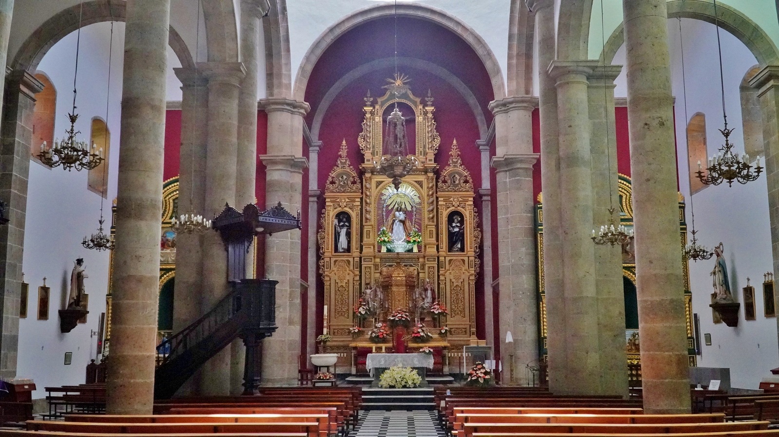 Der Calima dauert an und so haben wir am Morgen kurz nach 07:00 Uhr wieder bereits 26°C auf dem Thermometer auf unserer Terrasse. In den Bergen schaut es aber deutlich klarer aus und so fahren wir via Fataga hinauf in die Berge. Kurz vor Tejeda biegen wir zum Parkplatz La Goleta ab, von dem aus die Wanderung zum Roque Nublo startet. Da wir früh genug dran sind, bekommen wir sofort einen Parkplatz und beginnen hier unsere Wanderung zu dem Wahrzeichen Gran Canarias - dem "Wolkenfels" Roque Nublo. Anders als fast alle anderen Touristen nehem wir nicht den direkten Aufstieg, sondern wandern um den Felsen herum und steigen erst zum Ende der Rundtour auf das Plateau hinauf. Der Weg führt durch Kiefernwald und bietet immer wieder geniale Aussichten ins Tal. Gleich zu Beginn geht es an einem weiteren imposanten Felsen - dem El Fraile (Mönch) vorbei. Im Tal sehen wir Tejeda und auch einen weiteren Felsen, den Roque Bentayga, wo wir gestern bereits waren. Dann geht es hinauf zum Plateau des Roque Nublo. Hier empfängt uns eine atemberaubende Szenerie, auch wenn es inzwischen ziemlich voll wird. Eine Armada von mit AI-Bändchen verzierten "Maspalomas-Touristen", teilweise mit Flip-Flops, stürmt das Areal. Wir machen uns nach ein paar Gipfelfotos wieder auf dem Rückweg zum Parkplatz. Hier ist inzwischen die Hölle los und alles hoffnungslos zugeparkt, so dass erst einmal nix mehr geht. Dann konnten wir uns aus dem getümmel befreien und wir fahren weiter zum nahen Mirador de Pico de Las Nieves. Hier ist der höchste Punkt Gran Canarias auf 1.949m Höhe. Auch wen den Gipfel eine hässliche Radarkuppel ziert, so hat man einen tollen Rundblick auf die Insel. Anschließend fahren wir wieder hinunter und via Vega San Mateo geht es nach Teror. Dieser kleine Ort hat nicht nur die Basílica de Nuestra Señora del Pino, das religiöse Hauptheiligtum Gran Canarias zu bieten, sondern auch eine tolle historische Altstadt mit vielen der typisch kanarischen Balkone. Wir drehen eine ausgiebige Runde durch den Ort und fahren dann über die GC-3 und die Südautobahn zurück ins Quartier nach Ayagaures.